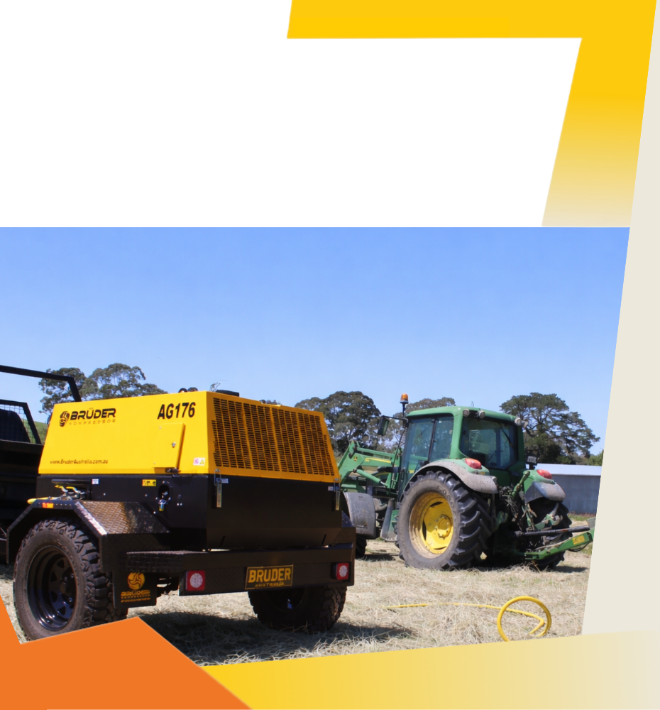 Our equipment was developed for demanding Australian agricultural conditions — particularly blowdown and machinery cleaning around grain harvest. That heritage of tough, field-ready design also translates naturally into other environments where portable air is critical. Today Brüder supports agriculture, hire and rental fleets, and civil & construction, as well as heavy equipment service providers and contractors who need reliable air where there is no mains power available.